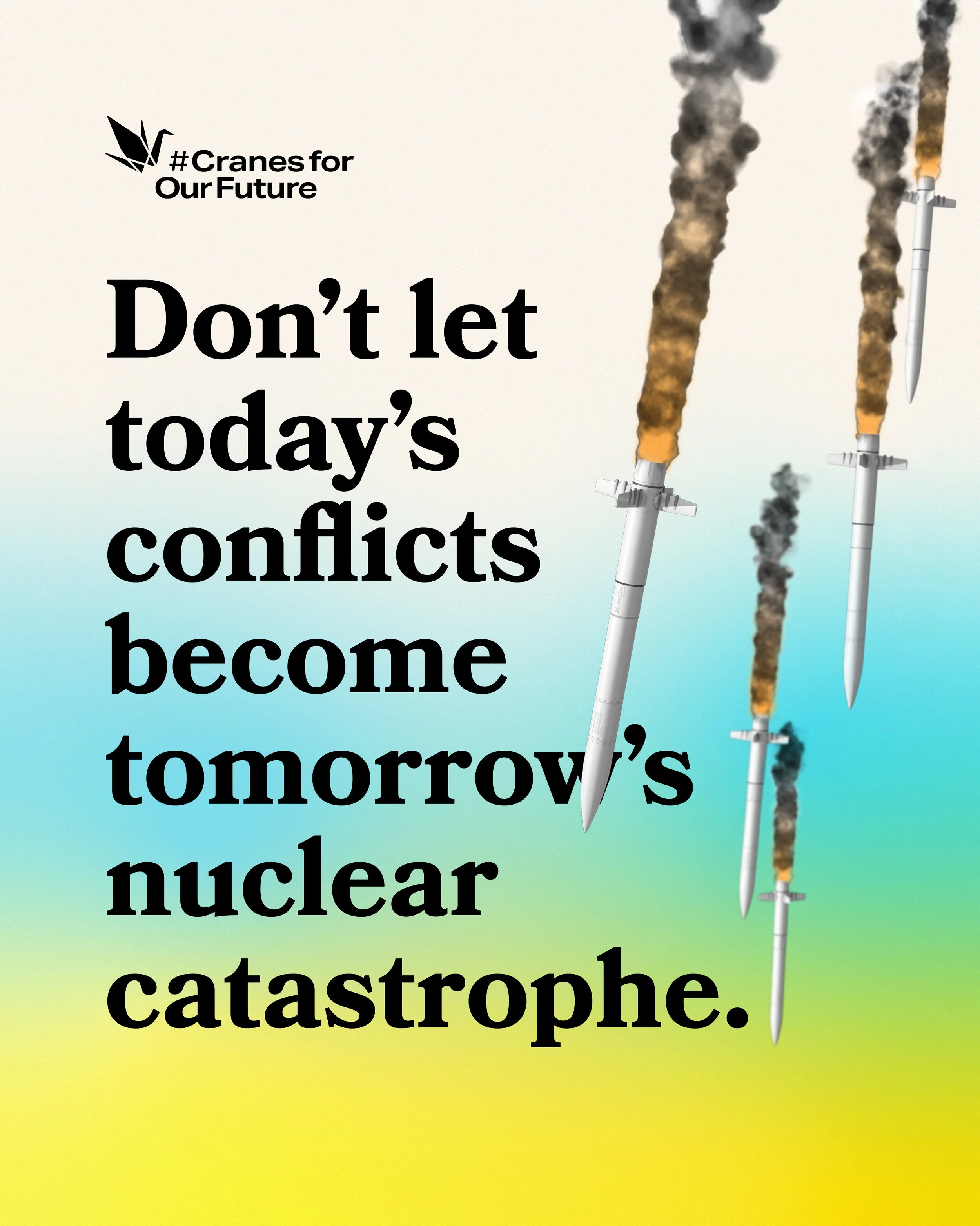 The #CranesForOurFuture campaign brings voices from around the world together to commemorate the anniversary of the atomic bombings of Hiroshima and Nagasaki by sharing paper cranes and messages of hope to demand a more peaceful future.